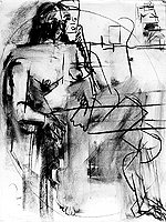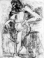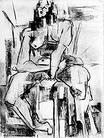 Natalie Baker spent the summer of 1958 at Hans Hoffman's studio in Provincetown, MA. Below are three drawings which she began and which Hoffman drew over as "corrections". Hoffman's strong lines and shading are evident throughout.