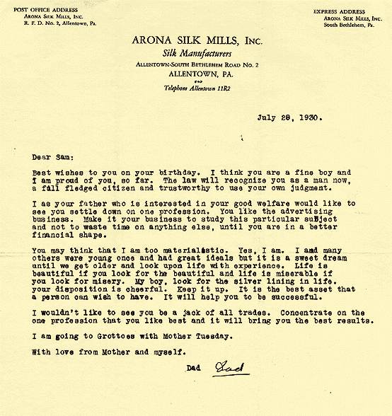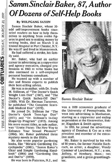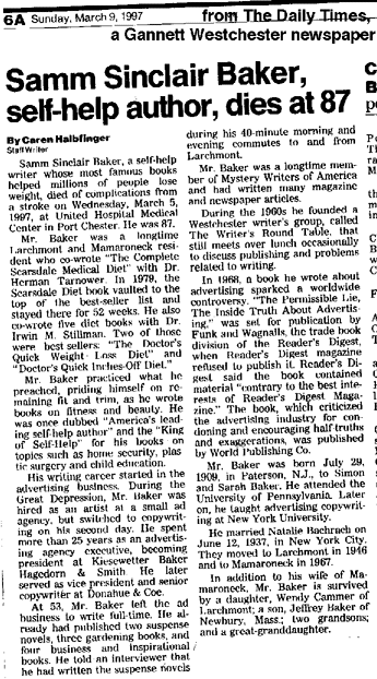 Samuel Baker. Born July 29, 1909 in Patterson, NJ to immigrants from eastern Europe. Worked in weaving mills. Attended Wharton School for one year. Worked as freelance writer and cartoonist. Moved to New York City and became involved with advertising including early television. Married